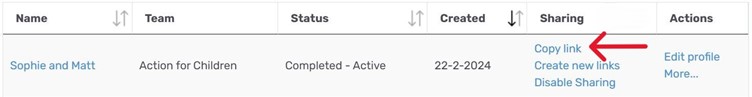 Then, click on “Copy link”. You can then paste it into a browser or an email and share it with whoever needs it (e.g. approval panel, placement team, child’s social worker, etc.).