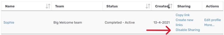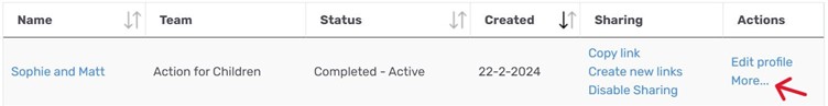 Go to the “Sharing” column. If the profile has never been shared before, you will need to click on “Create new links” first.