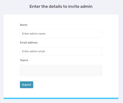 - Admins: This is where you can see admins in your team. You can also invite admins.
