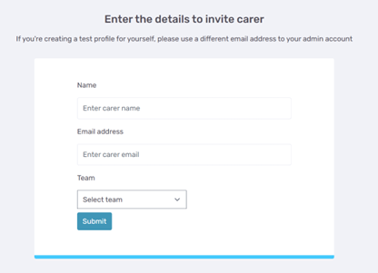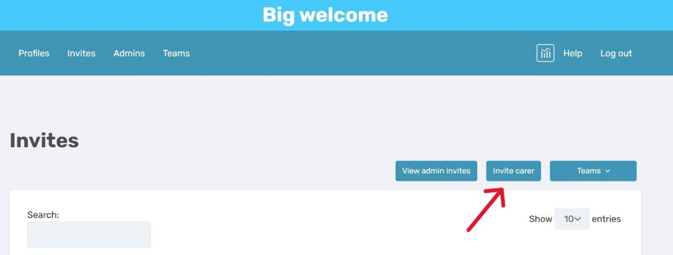 - Invites: This is where you can invite foster carers to create their account. You can also see past carer invitations.