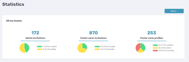 - Foster carer invitations: Shows the total number of invitations to foster carers and their status (accepted/pending).