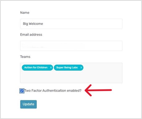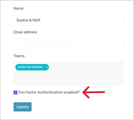 - Tick the "Enable two-factor authentication" box and click "Update".